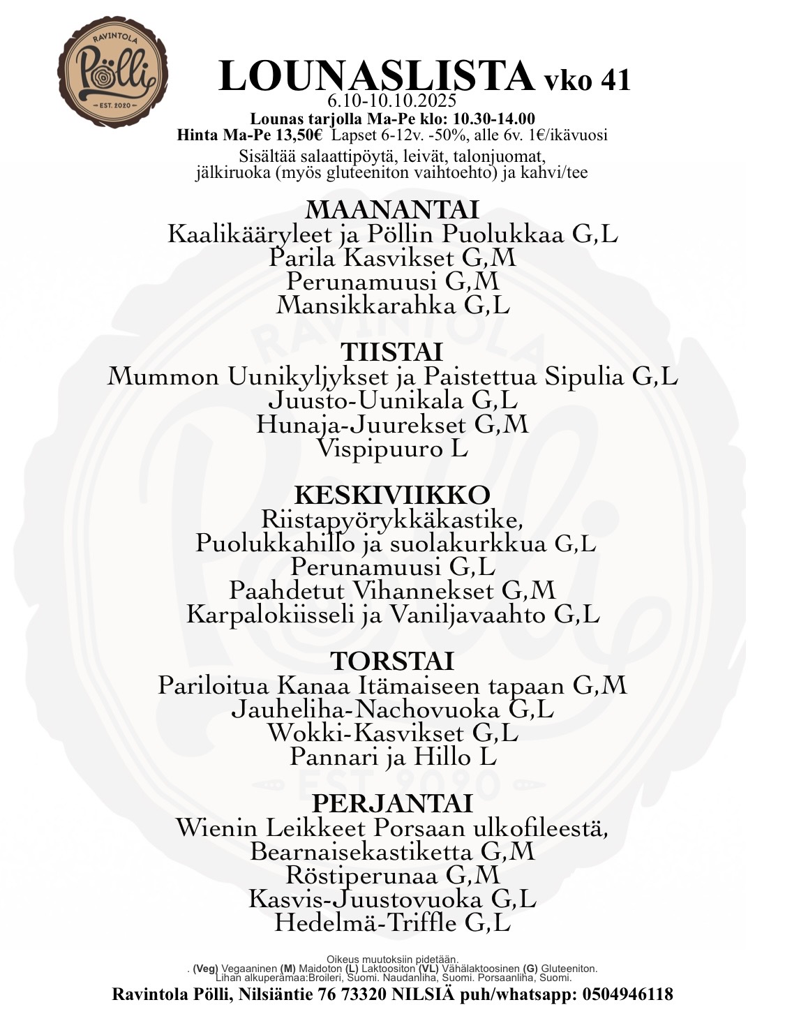 Ravintola Pölli tarjoeloo mahtavia herkkuja aena uamusta iltaan.